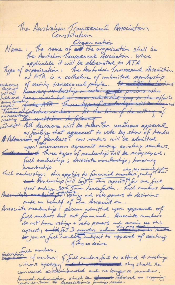 Roberta Perkins (1949-2018) led an extraordinary life as an activist, advocate and academic. She was a pioneer in the fight for trans rights and the rights of sex-workers in Australia. In the early 1980s Roberta became a key member of the Australian Transsexual Association (ATA). She helped form a special lobbying committee within the association to fight for transsexual rights, including birth certificate reform, rights to redress under the anti-discrimination Act and reform for trans prisoners. In October 1982 Roberta led Australia’s first trans rights protest, organised by the ATA in Manly; and in October 1983 through the ATA Roberta helped establish the transgender refuge Tiresias House.