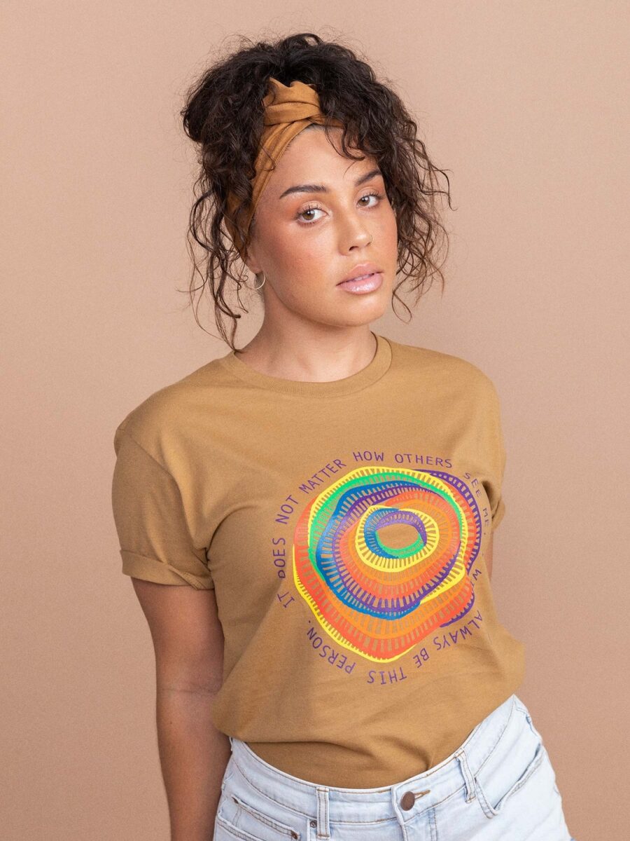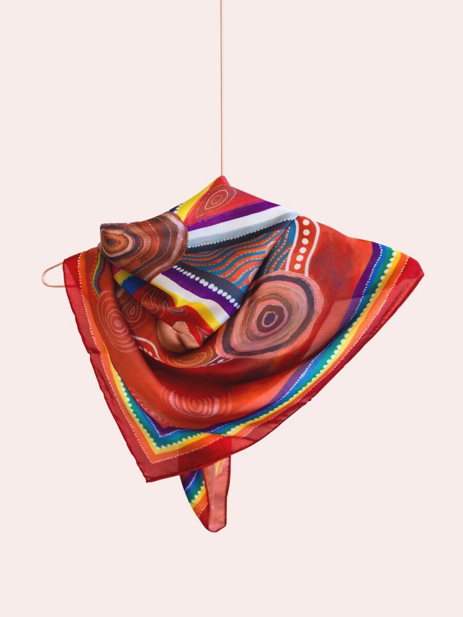 The Life Apparel Pride 2022 Collection comprises four textiles selected from their 2022 Pride range designed by First Nations artists Jason King and Skye Lockyer. Life Apparel is ‘a collective of artists, storytellers, creatives, Aboriginal and Torres Strait Islander peoples and allies, that strives to amplify First Nations voices and stories through fashion’. Individual pieces in this collection include: Tank Ngaya Yaam, 2022, designed by Jason King; T-shirt Ngaya Yaam, 2022, designed by Jason King; Scarf, Gulumarrigu / Come together, 2022, designed by Skye Lockyer; and Tie set, Gulumarrigu / Come together, 2022, designed by Skye Lockyer. For more information on Life Apparel, see: lifeapparel.co.