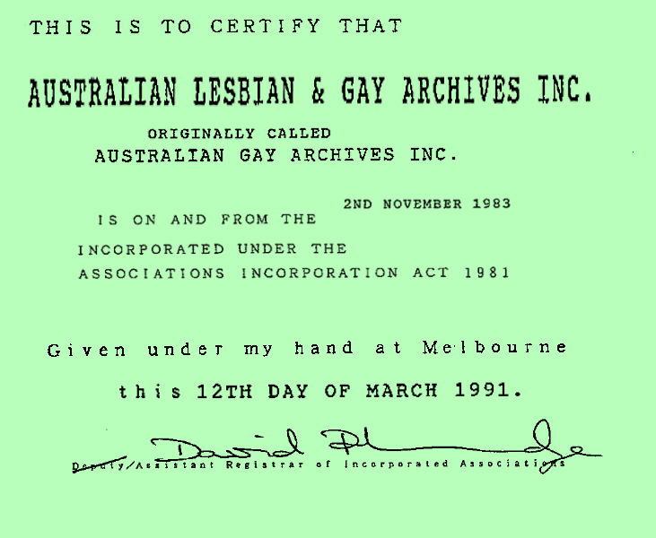 1991 : The Australian Lesbian and Gay Archives