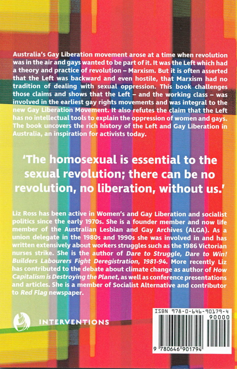 Australia’s Gay Liberation movement arose at a time when revolution was in the air and gays wanted to be part of it. It was the Left which had a theory and practice of revolution – Marxism. But it is often asserted that the Left was backward and even hostile, that Marxism had no tradition of dealing with sexual oppression. This book challenges those claims and shows that the Left – and the working class – was involved in the earliest gay rights movements and was integral to the new Gay Liberation Movement. It also refutes the claim that the Left has no intellectual tools to explain the oppression of women and gays. The book uncovers the rich history of the Left and Gay Liberation in Australia, an inspiration for activists today.